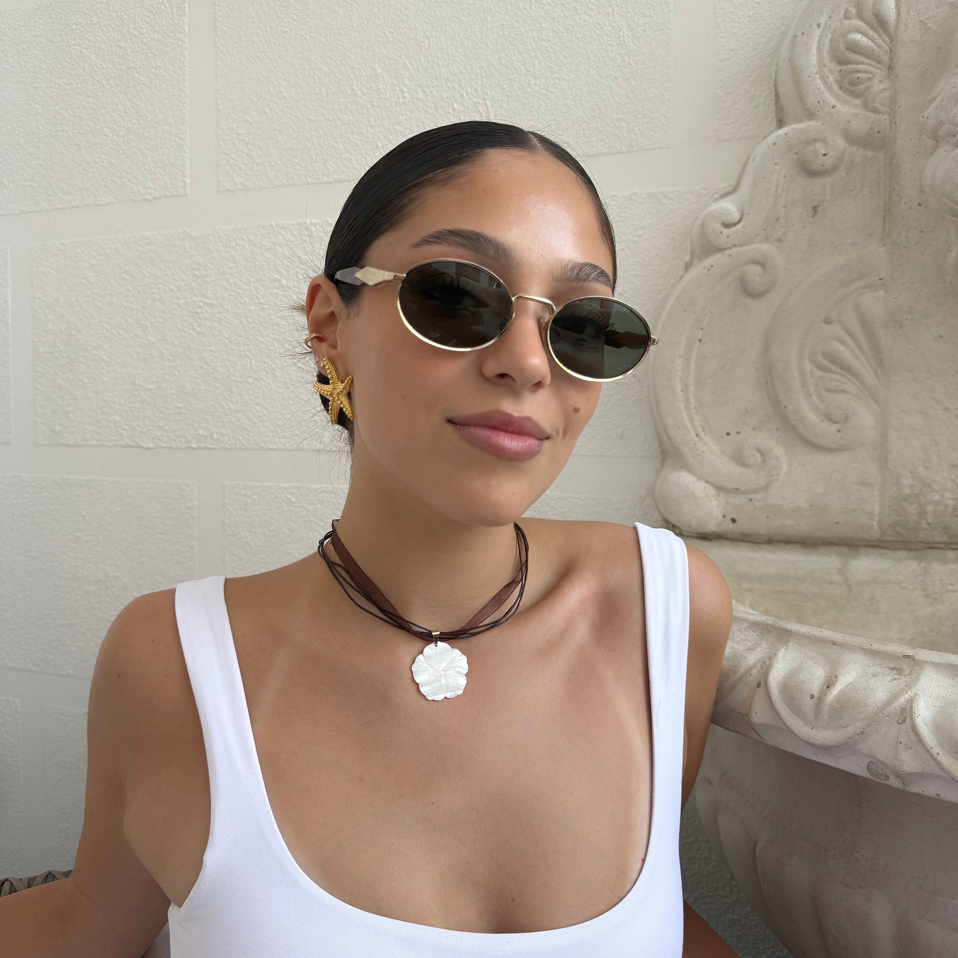 El complemento perfecto para el verano: cinta suave y flor de nácar que ilumina cualquier look