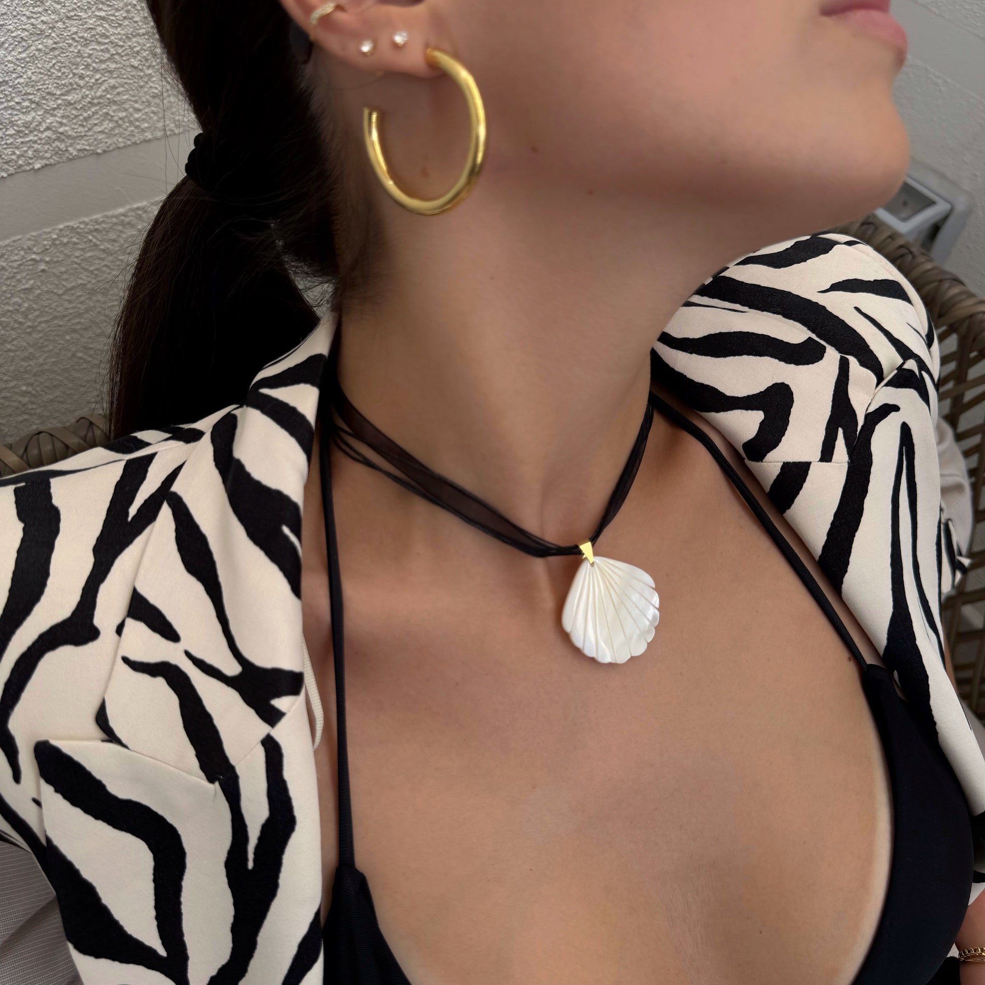 Un toque marino y natural para tus outfits: collar de cinta con concha de nácar