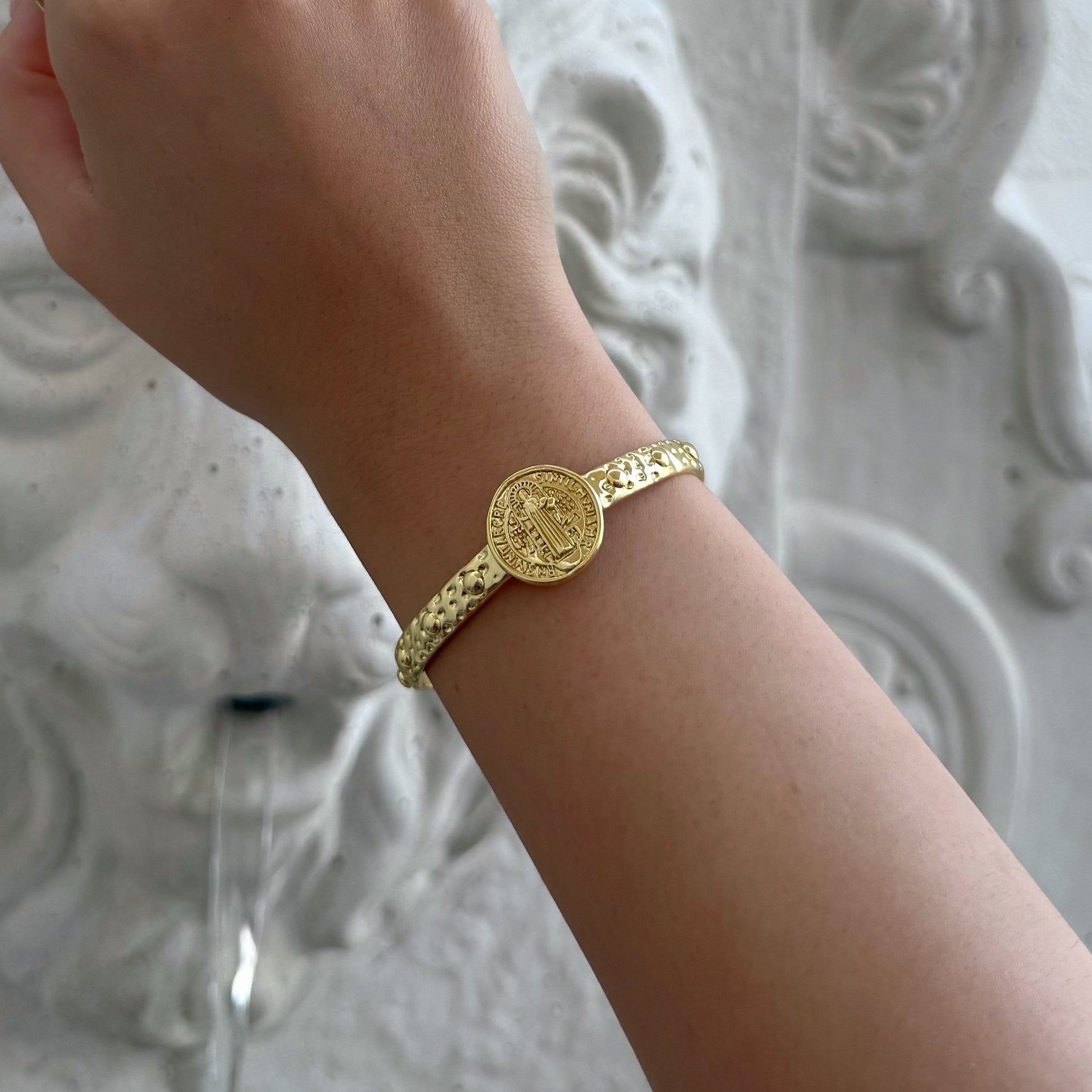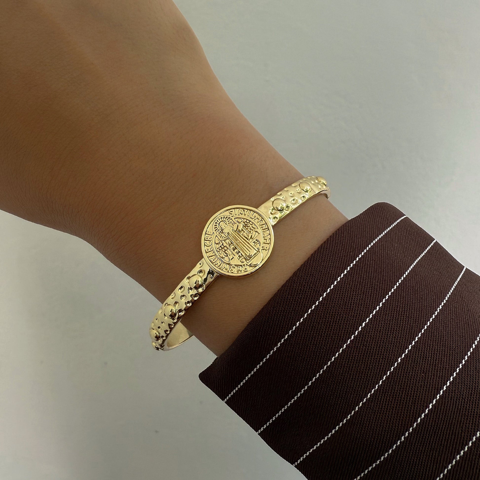 Esclava San Benito ajustable, bañada en oro 18k