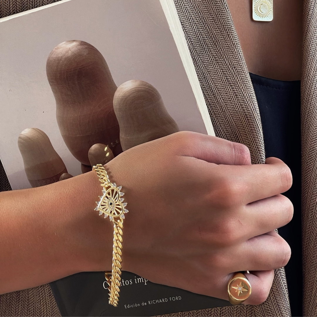 Esta pulsera de corazón brillante es más que un accesorio, es el toque especial que ilumina tu estilo. Con su delicado diseño y un corazón que captura la luz de manera única, es el detalle perfecto para darle un giro romántico a tu look. Ideal para esos momentos donde quieres destacar con sutileza pero sin perder elegancia. Llévala y deja que su brillo hable por ti. ¡Un regalo perfecto para ti o esa persona especial.